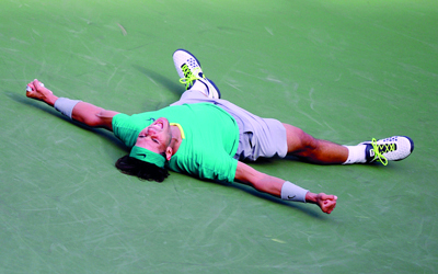 وفي طريقه الى اللقب، كان نادال اجتاز عقبة السويسري روجيه فيدرر بطل النسخة الماضية في ربع النهائي، ثم تخلص من التشيكي توماس برديتش صاحب الضربات القوية في دور الاربعة.