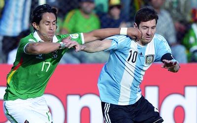 في المباراة الأولى على ملعب هرناندو سيليس المرتفع نحو 3600م عن سطح البحر، فشلت الأرجنتين في فك العقدة البوليفية للمرة الرابعة على التوالي (خسارة مذلة 1ـ6 عام 2009، وتعادلان بنتيجة واحدة 1ـ1 عام 2011 في كأس كوبا أميركا وتصفيات المونديال الحالية)، لكنها خرجت بتعادل ثمين هو الخامس في تاريخ المواجهات بين المنتخبين، مقابل 22 فوزا وست هزائم.