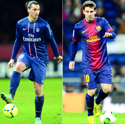 ميسي يحمل آمال برشلونة لهز شباك سان جيرمان إبراهيموفيتش يتحدى فريقه السابق بعد عودته من الإيقاف.أ.ف.ب