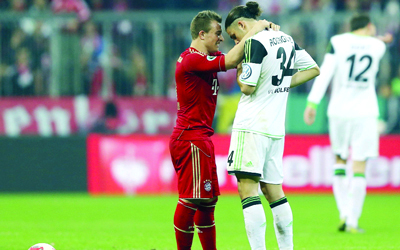 وجه فريق بايرن ميونيخ الألماني إنذاراً شديداً لفريق برشلونة قبل لقائه في دوري الـ4 من أبطال أوروبا الاسبوع المقبل، بعد اكتساحه فريق فولفسبورغ الألماني بسداسية قاسية في نصف نهائي كأس ألمانيا، ليصبح الفريق الألماني على بعد خطوة واحدة من حسم ثاني ألقابه في الموسم، في انتظار معركة الأبطال مع العملاق الكاتالوني.