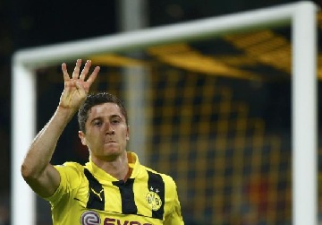 ليفاندوفسكي يحتفل بالسوبر هاتريك في مرمى ريال مدريد. رويترز