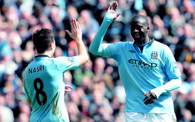 احتفل لاعبو مانشستر سيتي، أمس، بفوزهم على فريق وست هام يونايتد، بهدفين لهدف، ضمن منافسات الدوري الإنجليزي الممتاز، لكن هذه الفرحة جاءت متأخرة، بعد أن فرط الفريق في لقب الدوري، لمصلحة الشياطين الحمر، الذي حسم اللقب في الجولة الماضية. وسجل لسيتي، الأرجنتيني سيرجيو أغويرو، والفرنسي سمير نصير، في حين جاء هدف وست هام من خلال أندي كارول.