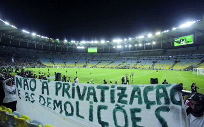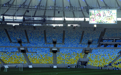 أعيد افتتاح ملعب ماراكانا في ريو دي جانيرو، الذي سيستضيف نهائي كأس العالم 2014، بإقامة مباراة استعراضية، رغم عدم الانتهاء من أعمال الإنشاءات فيه بشكل كامل. وتم الانتهاء فقط من مدخلين للاستاد، وهناك بعض المقاعد لاتزال غير مثبتة في مكانها حتى الآن، كما أن المنطقة المحيطة بالملعب تشبه مواقع البناء، ومع ذلك أعيد افتتاحه، أول من أمس، بمباراة استعراضية بين فريقين، بقيادة المهاجمين رونالدو وبيبيتو. وماراكانا هو رابع استاد من 12 ملعباً من المقرر ان تستضيف نهائيات كأس العالم 2014، يتم افتتاحه، بعد أن تخطى الموعد النهائي الذي وضعه الاتحاد الدولي (فيفا) للافتتاح بأربعة أشهر، وكان من المقرر أن يتم الانتهاء منه في ديسمبر. وسيتستضيف الملعب أيضاً مباريات في كأس القارات المقررة أيضاً في البرازيل في يونيو المقبل.