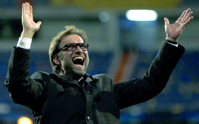 كلوب بعد إطلاق صافرة نهاية المباراة وإعلان تأهل فريقه دورتموند. رويترز
