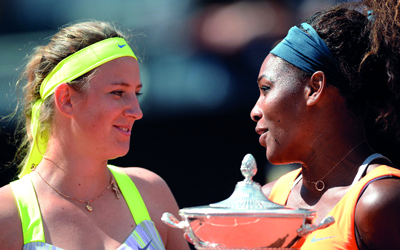 أحرزت الأميركية سيرينا وليامس، المصنفة أولى لقب بطلة دورة روما الدولية لكرة المضرب، خامس دورات الألف نقطة للماسترز والبالغة جوائزها 2.646.495 مليون يورو للرجال و2.369 مليون دولار للسيدات، بفوزها السهل على البيلاروسية فيكتوريا ازارنكا الثالثة 6-1 و6-3 أمس، في المباراة النهائية.