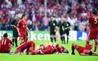 الحزن والإحباط يخيّمان على لاعبي البايرن بعد الخسارة من تشلسي 2012. رويترز