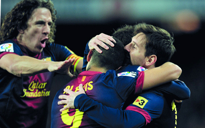 برشلونة يأمل معادلة الإنجاز المسجل باسم ريال مدريد في الموسم الماضي. أ.ف.ب
