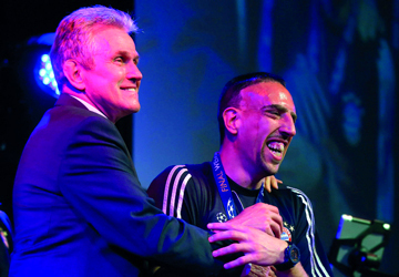 هاينكيس مع نجم بايرن ريبيري في احتفال الفوز. أ.ف.ب