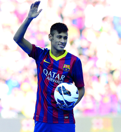رحّب نحو 60 ألف مشجع برشلوني أول من امس بنجم الفريق الكاتالوني الجديد البرازيلي نيمار، المنتقل إليه حديثاً قادماً من سانتوس مقابل 57 مليون يورو، وهو العدد ذاته من الجماهير الذي حضر تقديم النجم السويدي زلاتان إبراهيموفيتش خلال تعاقده مع النادي الكاتالوني عام 2009. ويترقب الجمهور من اللاعب نجاحاً باهراً مع الفريق ليعيده إلى الألقاب الإسبانية والأوروبية اعتباراً من الموسم المقبل.