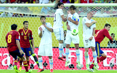 اكتفى المنتخب الإسباني لكرة القدم بهدفين في شباك منتخب أوروغواي في مباراتهما مساء أول من أمس، في بداية مشوارهما في المجموعة الثانية بالدور الأول لبطولة كأس القارات 2013 المقامة حالياً بالبرازيل.