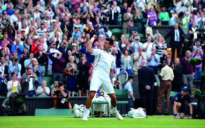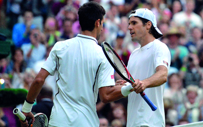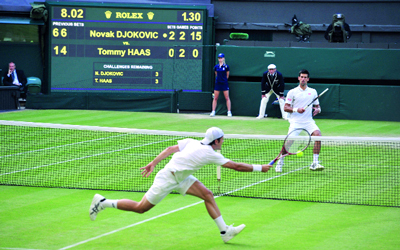 واصل الصربي نوفاك ديوكوفيتش، المصنف الأول، مسيرته الناجحة في بطولة ويمبلدون للتنس، ونجا من «المقصلة» التي اطاحت بمعظم اللاعبين الكبار المصنفين الأوائل، وعلى رأسهم رافائيل نادال وروجيه فيدرر، إذ تأهل ديوكوفيتش الى دور الثمانية، بعد فوزه على الالماني تومي هاس بثلاث مجموعات متتالية، بنتيجة 6/1 و6/4 و7/6 في الدور الرابع للبطولة المقامة على الملاعب العشبية.