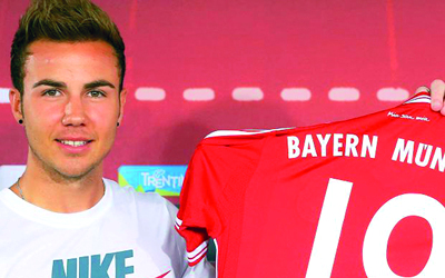 فرض نادي بايرن ميونيخ بطل ثلاثية الدوري والكأس ودوري أبطال أوروبا، أمس، غرامة مالية على لاعبيه ماريو غوتزه وماريو غوميز ويان كيرشوف، بسبب ارتداء ملابس تحمل شعار شركة نايك للملابس الرياضية، في انتهاك للاتفاق المبرم مع شركة أديداس. وذكرت مصادر في نادي بايرن ميونيخ لصحيفة «بيلد» أن الغرامة الموقعة