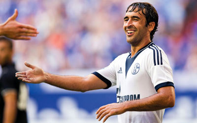 راؤول غونزاليس لعب لشالكة والسد في مباراة اعتزاله. أ.ف.ب