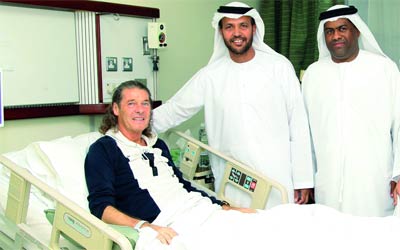 ميتسو في المستشفى وحسن طالب وبن دخان أثناء الزيارة. من المصدر
