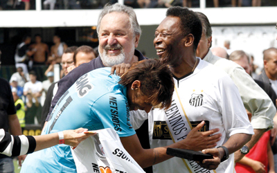 بيليه يمازح نيمار عندما كان لاعباً في سانتوس. أ.ف.ب