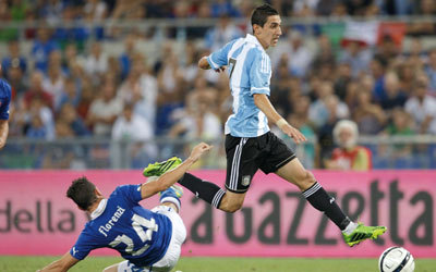 دي ماريا يتخطى فلورينزي بمهارة. أ.ب
