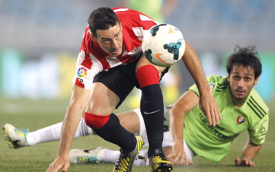 مهاجم بلباو أوديريز يتجاوز دفاع أوساسونا. إي.بي.أيه