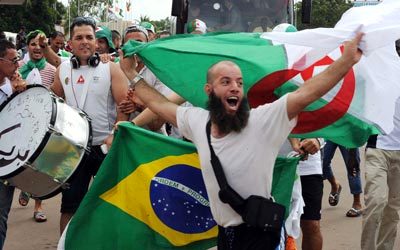 الجمهور الجزائري شاهد مباراة بلاده مع بوركينا فاسو رغم تشفيرها. أ.ف.ب
