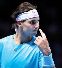 استهل الإسباني رافايل نادال، المصنف أول، مشواره في بطولة الماسترز لكرة المضرب للرجال المقامة في لندن والبالغة جوائزها ستة ملايين دولار، بقوة بفوزه السهل على مواطنه دافيد فيرر الثالث 6-3 و6-2 في 74 دقيقة في ختام الجولة الاولى من منافسات المجموعة الاولى.