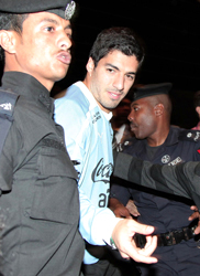 سواريز في عمان وسط حماية أمنية مشددة. أ.ف.ب