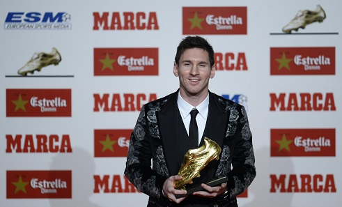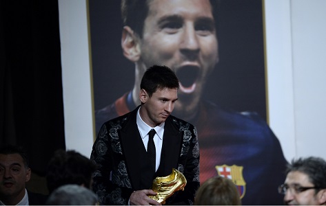 وأصبح ميسي (26 عاما) الذي سجل 46 هدفا في موسم 2012-2013، أول لاعب يحصل على جائزة الحذاء الذهبي 3 مرات بعد عامي 2010 و2012.
