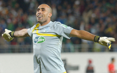 حارس الرجاء ياسين الحد يحتفل بالإنجاز الكبير. أ.ف.ب