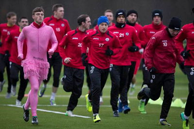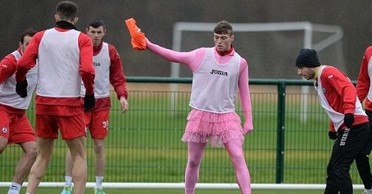 جعل مدرب نادي بارتيك ثيسل الأسكتلندي، من لاعب وسط الفريق جاري فريزر، أضحوكة الأسبوع الماضي، عندما أجبره على ارتداء قميص نسائي وردي في التدريب امام زملاءه وكميرات التصوير، وذلك كجزاء له على سوء مستواه وكسله في التدريبات.