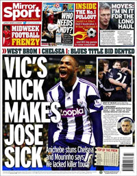 تطرقت صحيفة «الميرور» البريطانية، أمس، إلى تفاصيل مباراة ويست بروميتش ألبيون وتشلسي، ضمن الدوري الإنجليزي الممتاز أول من أمس، التي انتهت بتعادل مخيب للبلوز. وقالت الصحيفة إن مهاجم ويست بروميتش أنتشيبي وجه ضربة صاعقة إلى مورينيو، وتركه في صدمة وذهول، بعد أن سجل هدف التعادل القاتل في الدقيقة 87، ما جعل البلوز يخسرون نقطتين مهمتين جدا.