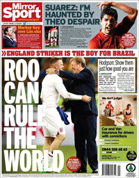 نقلت صحيفة «الميرور» البريطانية تصريحات عن مدرب منتخب انجلترا روي هودسون، طمأن فيها الفتى الذهبي لانجلترا ومهاجم الشياطين الحمر، واين روني على مستواه، مطالباً إياه بان يري العالم مهارته، وانه سيبهر في كأس العالم المقبلة، وانه لاعب مثالي يمكنه تسيد الكرة العالمية. وجاءت كلمات هودسون لتشجيع اللاعب في ظل المستوى الهزيل لفريقه.