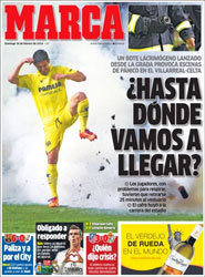 سلطت صحيفة «ماركا» الإسبانية الأضواء، في صفحاتها أمس، على النجم الويلزي غاريث بيل، وقالت إنه: «قاد ريال مدريد في 24 مباراة، ولم يخسر الفريق»، في إشارة الجدوى الفنية من وجود اللاعب في الفريق الملكي. وكتبت أيضاً عن الصوت العنيف الصادر في ملعب الغواصات «الذعر انتشر في مباراة فياريال ضد سلتا فيغو، بسبب قنبلة انفجرت في الملعب».