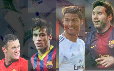 3- البرازيلي نيمار (برشلونة): 29 مليون (5ر14 مليون اجر سنوي + 500 الف مكافآت + 14 مليون عقود دعاية)