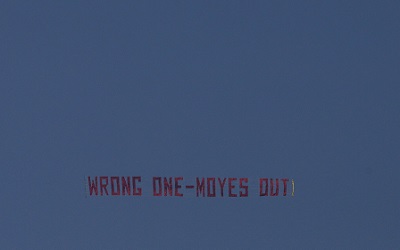 ولا يشعر المشجعون بالرضا عن نتائج الفريق هذا الموسم، حيث جمعوا مالا لاستئجار طائرة تحمل لافتة كتب عليها "الرجل الخطأ: ارحل يا مويز".