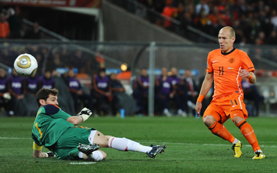 صدام مع الماتادور يتحسب المنتخب الهولندي كثيرا للقائه الأول في كأس العالم المقبلة بالبرازيل أمام إسبانيا، خصوصا أن هولندا تطلب ثأرا سابقا، بعد أن كان الفريق الاسباني قد خطف منه اللقب العالمي، بعد أن فاز عليه في نهائي نسخة جنوب إفريقيا بهدف لصفر، من توقيع أندرياس أنييستا. ولم ينسَ الهولنديون أبدا تلك المواجهة، ويستعدون بقوة للرد على الاسبان، كما أنهم يأملون أن ينتهي سوء الحظ الذي لازمه في المونديال بثلاثة نهائيات ضاعت منهم، في نسخ 1974 و1978 و2010. |