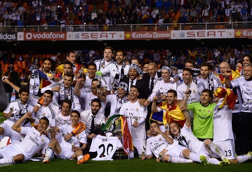 احرز ريال مدريد لقبه التاسع عشر والاول منذ 2011 في مسابقة كأس اسبانيا لكرة القدم، وعمق بذلك جراح غريمه التاريخي برشلونة بهزمه هدفين مقابل هدف امس، على ملعب "ميستايا" في فالنسيا في المباراة النهائية.