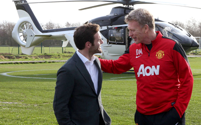 ماتا في حديث مع مدربه مويس وقت التعاقد مع مان يونايتد يناير الماضي. أرشيفية