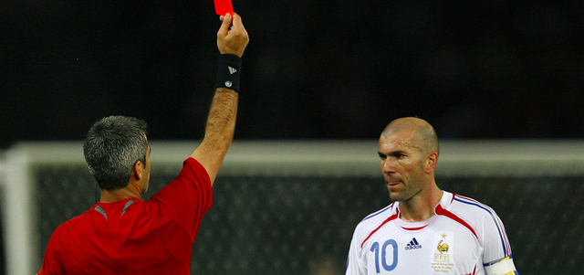 وشهدت المباراة المشاركة الأخيرة لقائد المنتخب الفرنسي زين الدين زيدان الذي قرر الاعتزال نهائياً عقب النهائيات، وهو أسدل عنها الستار ببطاقة حمراء في الدقيقة 110 لـ«نطحه» ماتيراتزي من دون كرة.