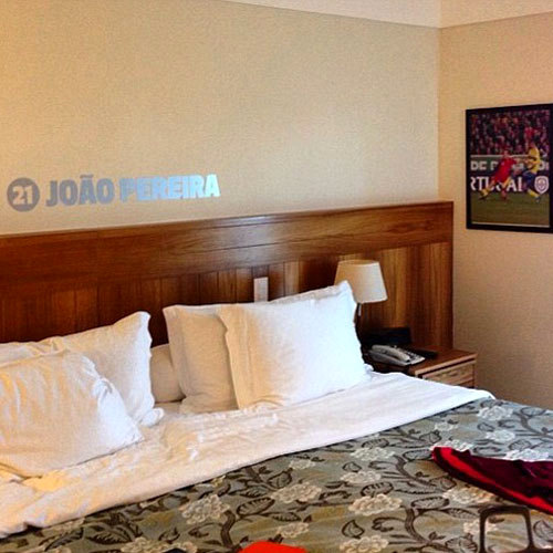 كشف لاعب المنتخب البرتغالي جواو موتينيو عن استقبال خاص أقامه الفندق، حيث تقيم البعثة البرتغالية بالبرازيل في منطقة كامبيناس. وعلى حسابه في موقعي التواصل الاجتماعي «تويتر» و«انستغرام» استعرض موتينيو صورة لغرفته في الفندق وعليها اسمه مكتوب بخط عريض وبطريقة مميزة، بجانب بقية غرف اللاعبين الآخرين، كما أن كل غرفة مجهزة بـ«بوسترات» خاصة لكل لاعب، وبعضها بشكل خاص لنجم المنتخب البرتغالي كريستيانو رونالدو.