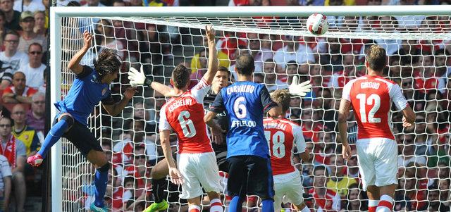 فالكاو هز شباك أرسنال ودياً من ضربة رأسية. أ.ف.ب