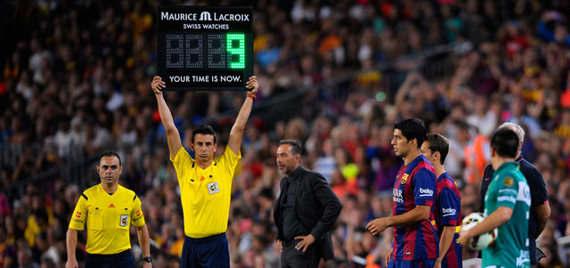 وبدأ سواريز على مقاعد البدلاء باستاد نو كامب، وشارك في آخر 15 دقيقة، وعاد شريكه في الهجوم نيمار للعب بعد إصابته في الظهر مع البرازيل في دور الثمانية لكأس العالم ضد كولومبيا، وسدد الكرة بهدوء من فوق الحارس وليام ياربرو، ليسجل الهدف الثاني لبرشلونة بعدما أحرز ليونيل ميسي الهدف الافتتاحي برأسه لأصحاب الأرض. وسجل نيمار هدفاً ثانياً قبل نهاية الشوط الأول، وفي الشوط الثاني أحرز البديل منير الحدادي هدفين وأكمل ساندرو راميريز وهو لاعب شاب آخر السداسية قبل دقيقة على النهاية.