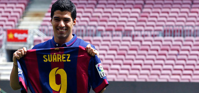 سواريز أبرز صفقة لبرشلونة بعد أن سمح له بالتعاقدات في الصيف الجاري.. لكن سيحرم في يناير وصيف 2015 بانتظار القرار الأخير من المحكمة الرياضية. أ.ف.ب