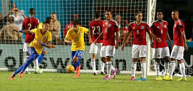نجح نيمار في قيادة منتخب البرازيل لكرة القدم إلى طريق الانتصارات مجدداً بتسجيله هدف الفوز على نظيره الكولومبي 1/صفر في مباراة دولية ودية أقيمت بينهما أول من أمس في مدينة ميامي الأميركية. وسجل نيمار هدفه في الدقيقة 82، في أول مباراة له مع المنتخب منذ تعرضه للإصابة الشهيرة في ظهره أمام كولومبيا بالذات في ربع نهائي كأس العالم التي استضافتها بلاده، حين تسبب فيها الكولومبي زونيغا، ما أدى إلى غيابه عن نصف النهائي والخسارة الكارثية من ألمانيا بالسبعة، ثم تبعتها خسارة ثانية بالثلاثة من هولندا في مباراة الترتيب.
