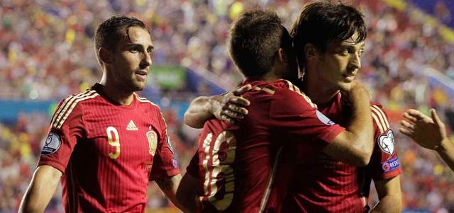 ومع سعيها لتعويض خيبة الأمل بالخروج المبكر من نهائيات كأس العالم في البرازيل، لعبت اسبانيا بطريقة رائعة لم تفلح معها محاولات مقدونيا المصنفة 76 عالمياً، بينما سجل باكو الكاسير وسيرجيو بوسكيتس وديفيد سيلفا وبيدرو بقية الأهداف في أكبر انتصار تحققه إسبانيا منذ سحقت تاهيتي 10-صفر في كأس القارات العام الماضي.
