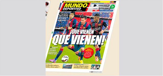 وعنونت صحيفة «موندو ديبورتيفو» أن «سواريز وميسي ونيمار يشهرون أسلحتهم قبل كلاسيكو البرنابيو.. الأوروغوياني والأرجنتيني والبرازيلي يعدون الجماهير بأداء مبهر».