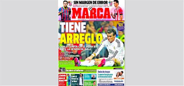 شددت صحيفة «ماركا» الإسبانية على أن فريق ريال مدريد يمر بأزمة كبيرة قبل لقاء الكلاسيكو أمام الغريم التقليدي برشلونة في الدوري الإسباني، خصوصاً بعد تأكد غياب الويلزي غاريث بيل عن المباراة بداعي الإصابة. وقالت الصحيفة إن «كارلو أنشيلوتي يثق بالخطة (ب) بعد تعرض بيل للإصابة، وهي عبارة عن شد من الدرجة الثانية في العضلة الخلفية، وسيبعد اللاعب عن المباريات 15 يوماً على الأقل»، موضحة أن «أنشيلوتي سيدخل ايسكو بخطة 4-4-2 التي تمكن عن طريقها من الفوز على بايرن ميونيخ وبرشلونة». دبي ـــ الإمارات اليوم