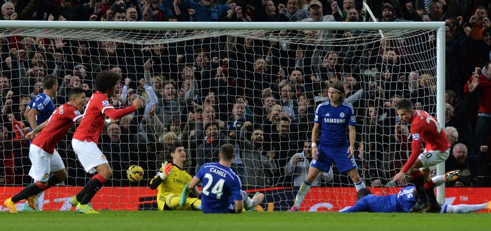 وأهدر تشلسي فوزا في المتناول كان سيبعده 6 نقاط في الصدارة و8 نقاط عن مانشستر سيتي حامل اللقب لأنه كان الطرف الافضل في المباراة، خصوصا في الشوط الثاني حيث سنحت له اكثر من فرصة لحسم النتيجة، بيد أنه دفع الثمن ومن خطأ لمدافعه الصربي برانيسلاف ايفانوفيتش في الدقائق الأخيرة بحق الدولي الارجنتيني انخل دي ماريا تلقى على اثره البطاقة الصفراء الثانية وطرد، فانبرى دي ماريا للركلة وتابعها الدولي البلجيكي مروان فلايني برأسه ارتدت من مواطنه تيبو كورتوا وتهيأت امام فان بيرسي الذي سددها بقوة داخل المرمى (90+4).