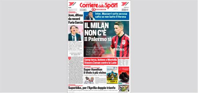 «هزيمة صاعقة في ملعب ميلان (سان سيرو) لفريق المدرب إنزاغي، إذ خسر من باليرمو الذي حقق الفوز لأول مرة خارج أرضه هذا الموسم».