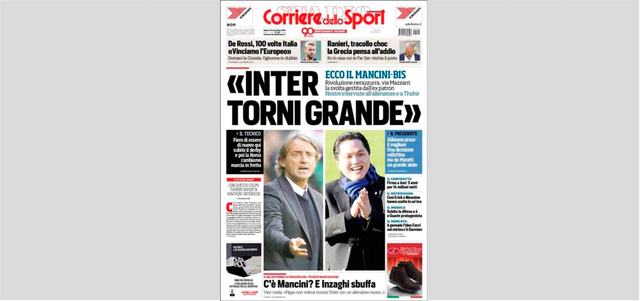 وصفت صحيفة «كوريرا ديلو سبورت» الإيطالية عودة المدرب روبيرتو مانشيني لتدريب إنترميلان للمرة الثانية، بأنها «النسخة الثانية» من مانشيني، حيث سيكون على المدرب الذي سبق أن أحرز ثلاثة ألقاب في الدوري الإيطالي مهمة إنقاذ الإنتر، الذي يعاني تواضع النتائج، بعد مرحلة ماتزاري، التي لم تحقق أي شيء للفريق. «كوريرا ديلو سبورت»