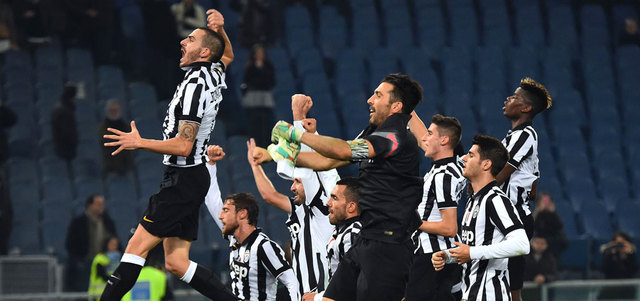 فرحة عارمة لليوفي بعد الفوز. أ.ف.ب