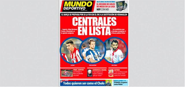 كشفت صحيفة «موندو ديبورتيفو» الكاتالونية، أن نادي برشلونة يستعد للمفاضلة بين بعض المدافعين لاحتمال تعويض البلجيكي فيرمايلين، الذي ستبعده الإصابة عن الفريق حتى نهاية الموسم. وسيتقدم برشلونة سريعاً في هذه الخطوة بمجرد حصوله على الضوء الأخضر من «فيفا»، والأمر يتعلق بمدافع بلباو لابورتي، وكذلك لاعب اشبيلية باريخا ولاعب سوسييداد مارتينيز، ولاعب فالنسيا اوتماندي.