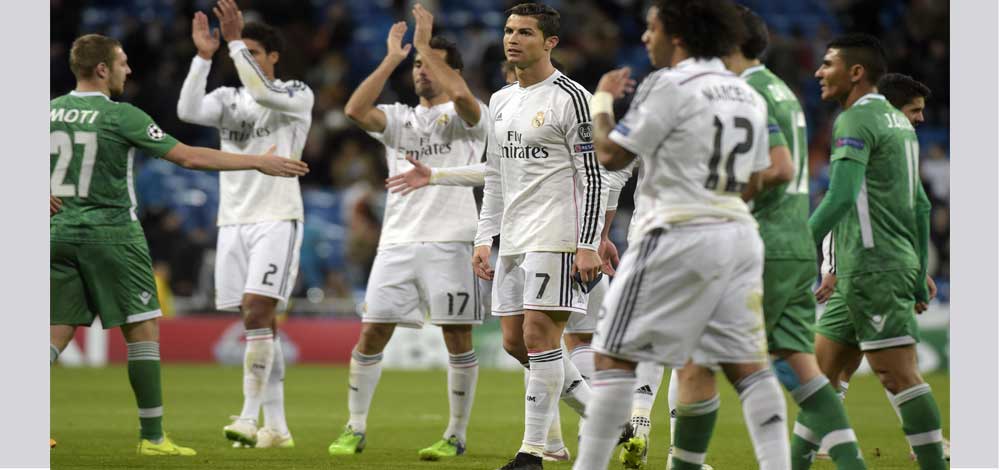 ولم يواجه النادي الملكي أي صعوبة في تسجيل العلامة الكاملة في دور المجموعات حيث حصل الفريق على ضربة جزاء مبكرة في الدقيقة 20 تزامنت مع طرد مارسيلو ناسيميينتو داكوستا مدافع لودوجوريتس، أحرز منها رونالدو الهدف الأول.